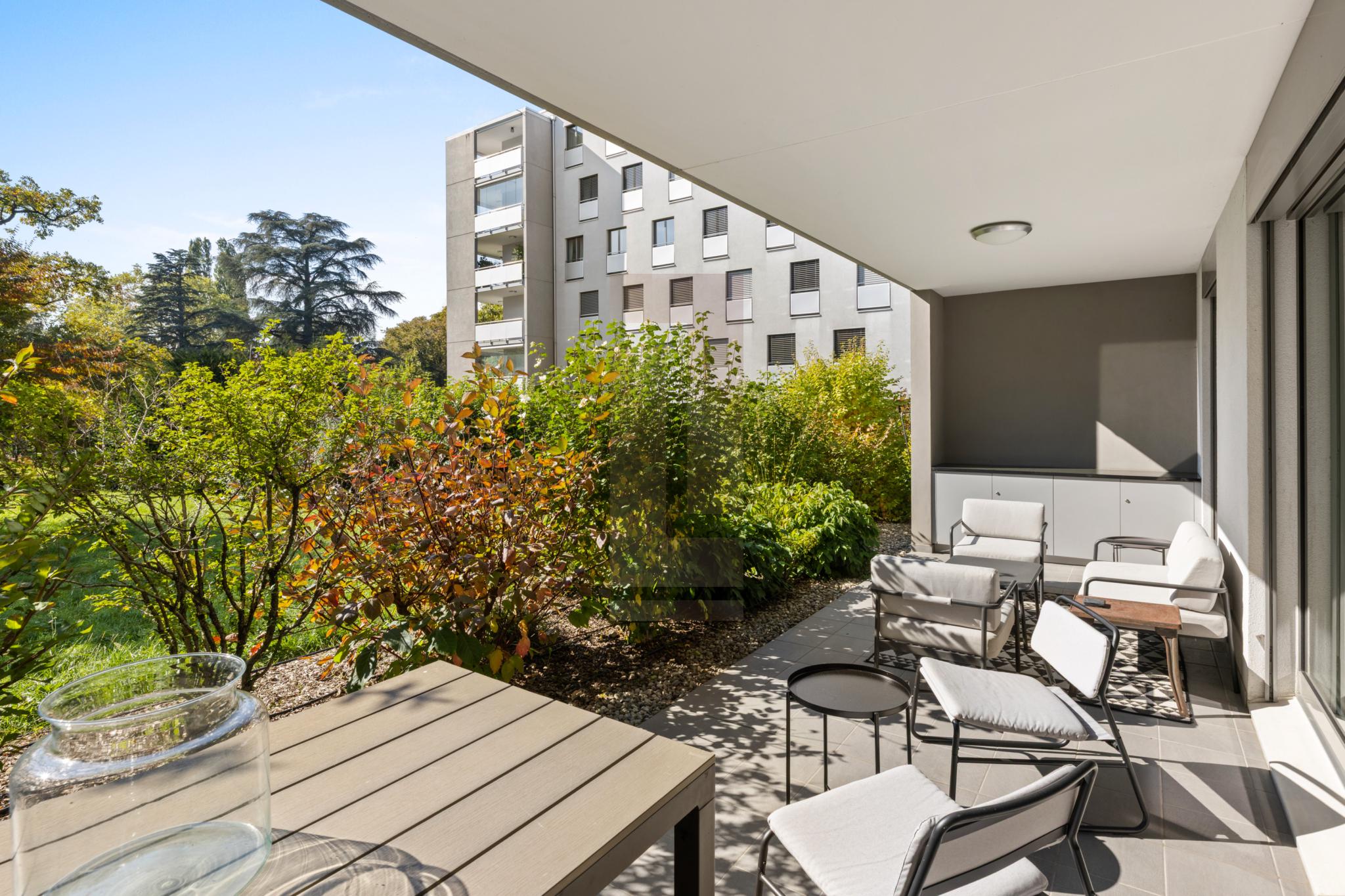 Located in the highly sought-after commune of Cologny, this 6-room ground-floor apartment combines contemporary elegance, comfort, and serenity. Nestled in a recent and secure residence surrounded by an 18,000 m² park, it enjoys an ideal location close to schools, shops, and downtown Geneva.