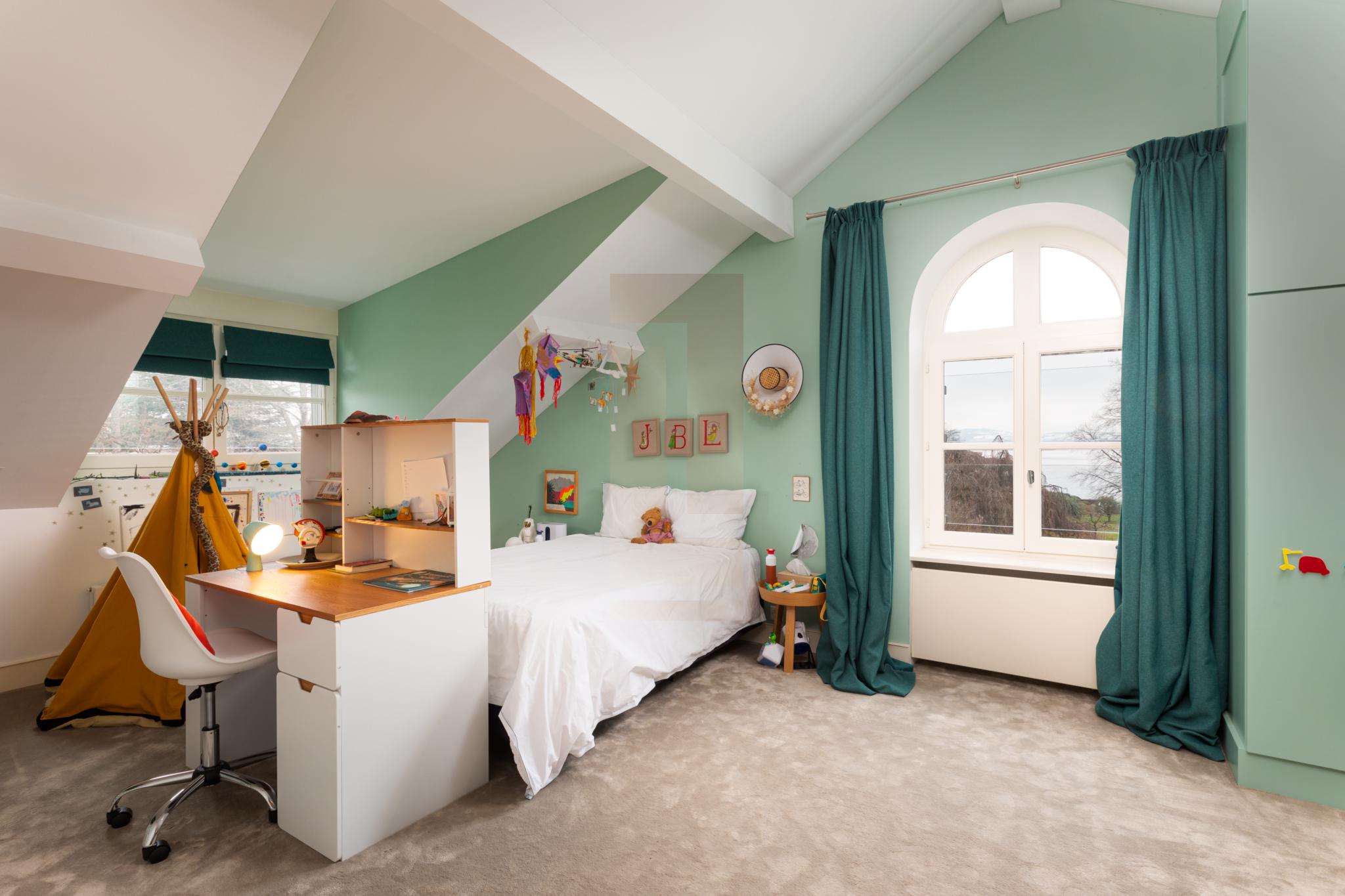 On the first floor, there is a master suite of nearly 60 m² with a dressing room and bathroom. This floor also includes a large bedroom with its own bathroom and a sitting area.
