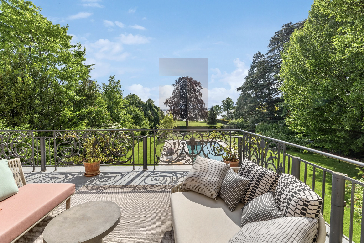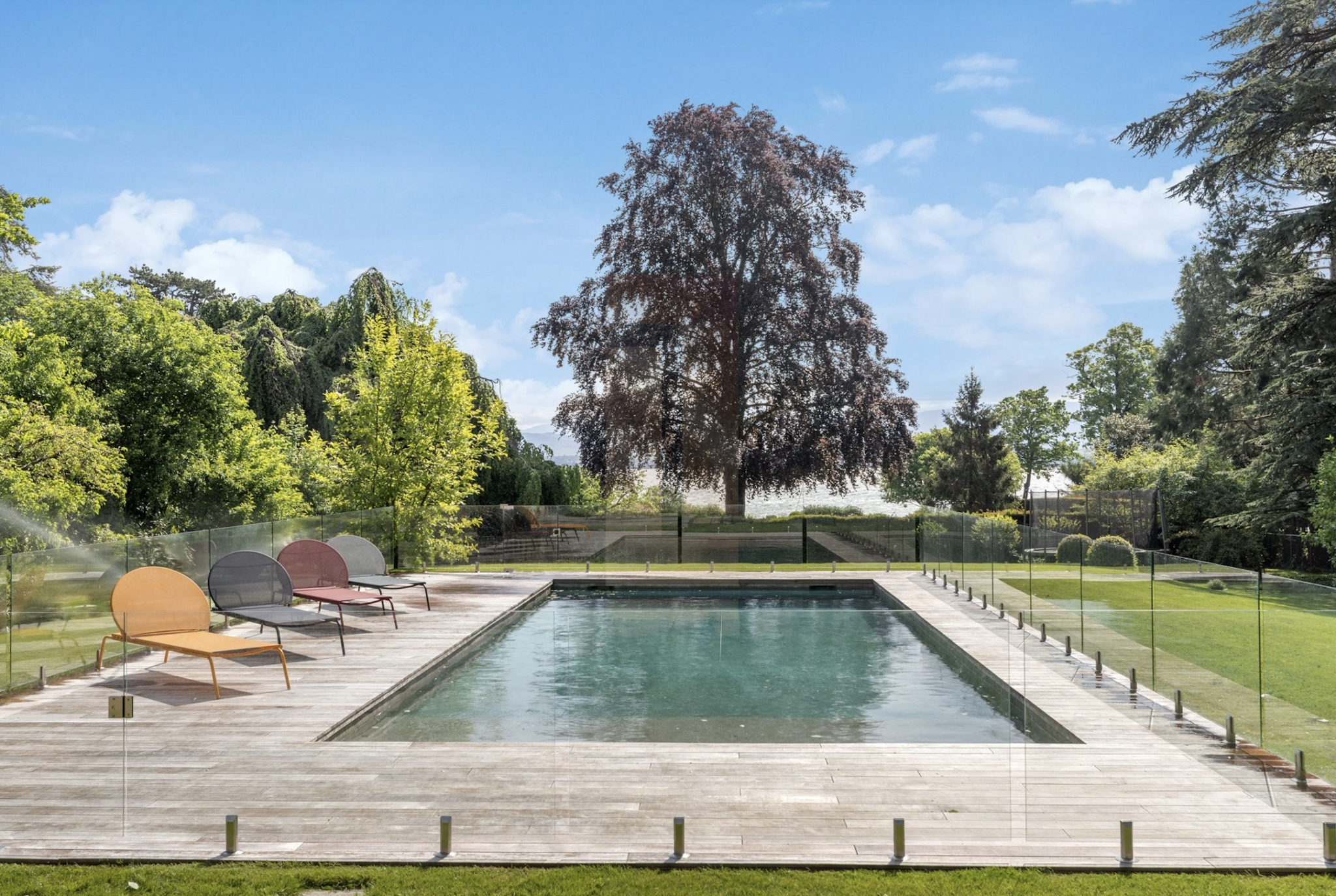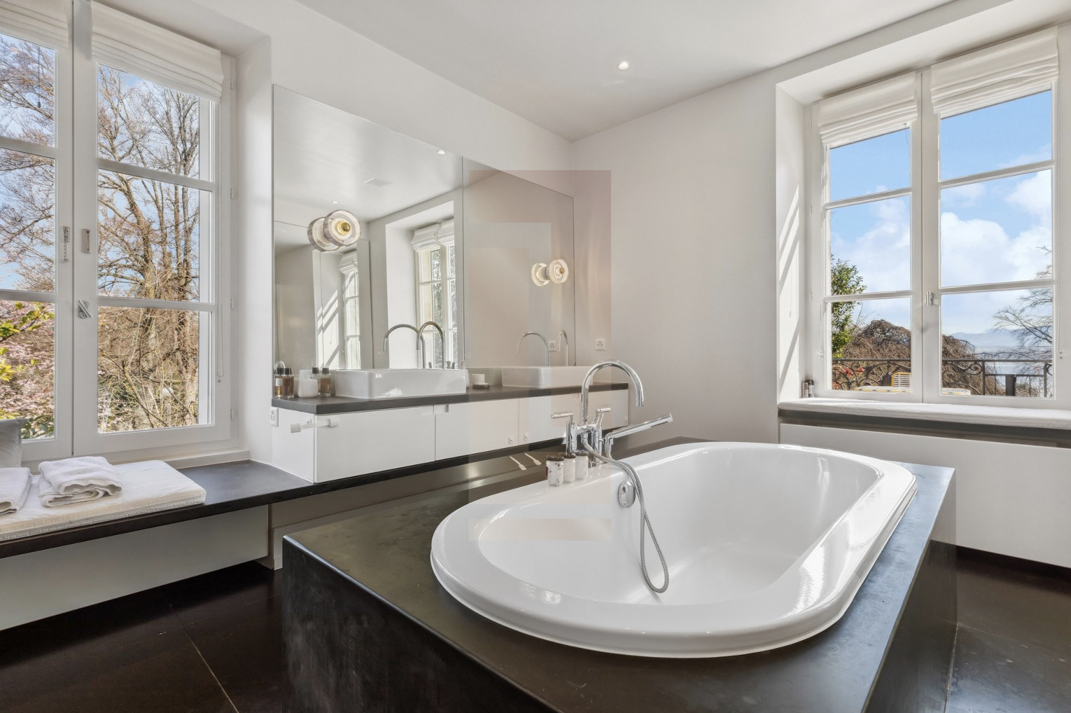 In the second line from the lake, this splendid residence, built around 1860 on a vast, wooded plot of nearly 4000 m², enjoys an idyllic setting. The property offers approximately 600 m² of living space and was restored in 2019 with high-quality materials to preserve its historic character while providing optimal comfort.