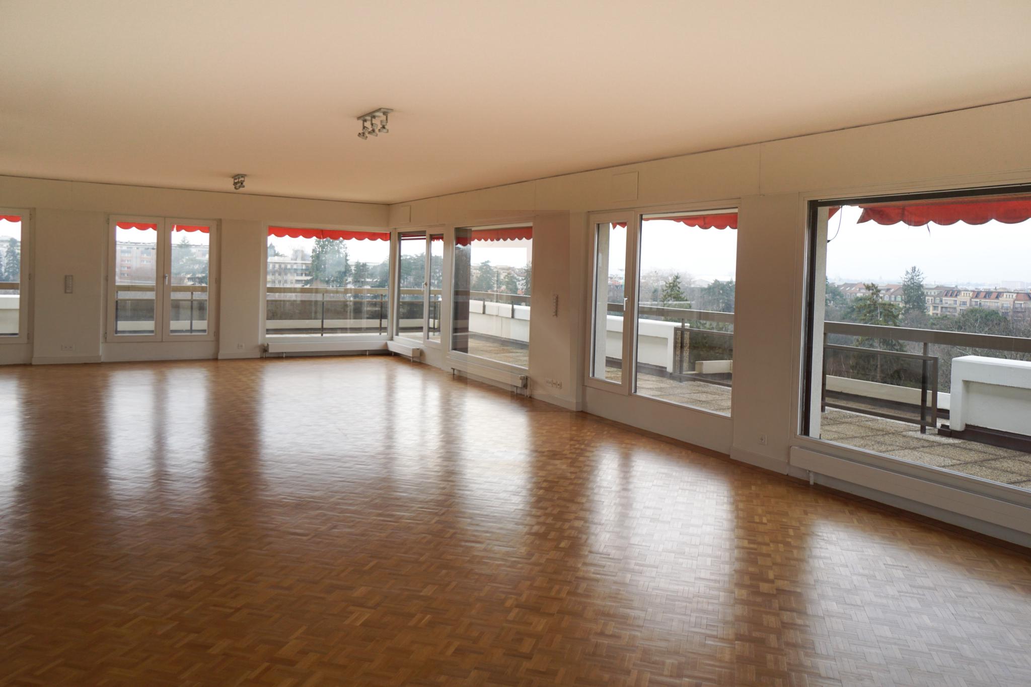 Situé au 9ème et dernier étage d'une résidence de standing calme et sécurisée, cet attique, de 250m2 de surface habitable et 170m2 de terrasse, offre une vue imprenable sur le Jura, le Parc Bertrand et les alentours.