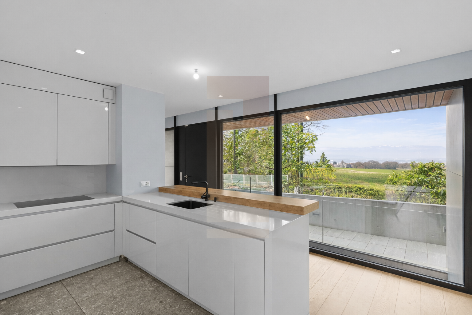 Cet élégant townhouse en triplex, niché dans la prestigieuse résidence privée VIDA (2020), offre un cadre de vie raffiné et des prestations de très haut niveau, comprenant une salle de sport et une piscine et une belle vue sur le lac et sur son jardin.